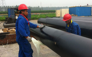 還要進行涂底漆。底漆涂刷前,應在容器中攪拌均勻,在除銹合格的鋼管表面上涂刷底漆,使其形成均勻的薄膜,待底漆表干后,即可纏帶。當?shù)灼彷^稠時,應加入與底漆配套的稀釋劑。